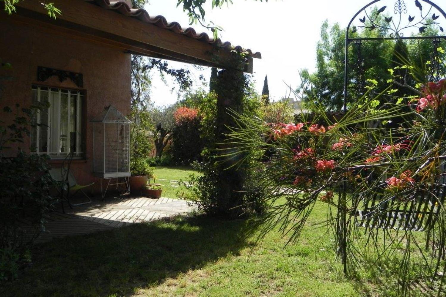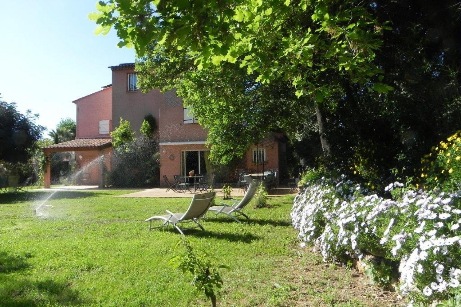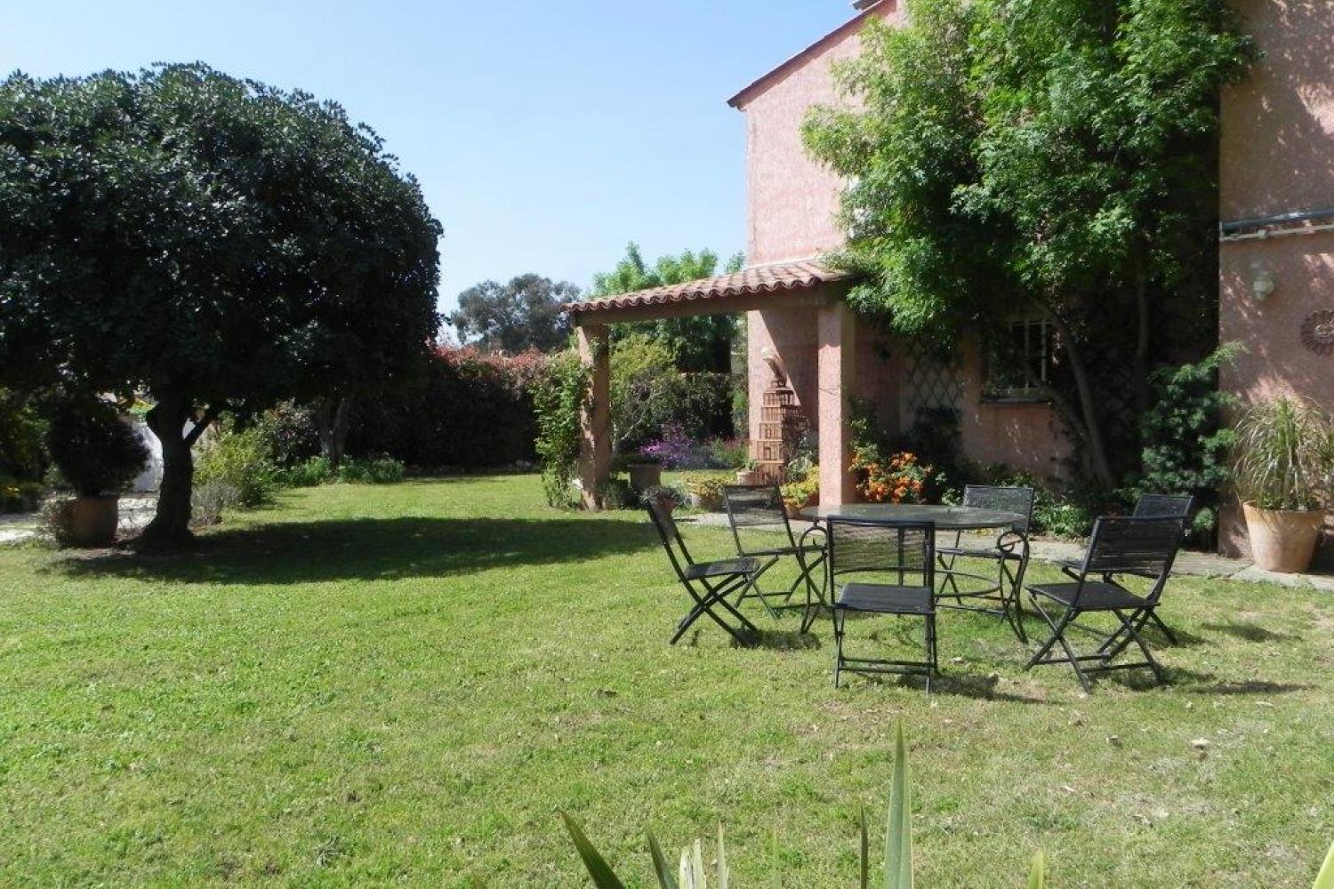 Large garden with hundred-year-old oaks and very flowery, furnished with various furniture, and various games: ping-pong, badminton, boules etc ...